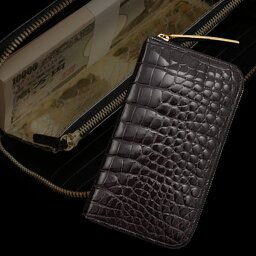 ワニ革 本革 クロコダイル 財布 長財布 レザー ラウンドファスナー 男性用 メンズ サイフ 本物 クロコ ブラウン ブラック ワニ 革 財布 メンズ クロコダイル