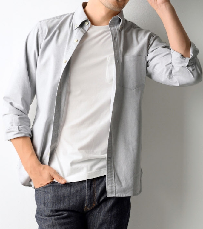 Amazon Co Jp アオキ Aoki アオキ スリム Les Mues ボタンダウンシャツ Eblm0670s グレー L 服 ファッション小物